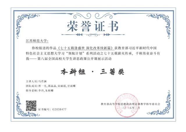 近日,由教育部高校思想政治理論課教學指導委員會主辦的“七十五載薪火傳承,千秋偉業奮斗有我——第八屆全國高校大學生講思政課公開課”展示活動已圓滿完成。本次活動共收到1339所高校提交的5007部大學生講思政課公開課作品。經過激烈角逐,我校報送的作品《“遺”脈“香”承 匠心鑄魂》榮獲全國本科組二等獎,《七十五載逢盛世 深化改革續新篇》榮獲全國本科組三等獎。