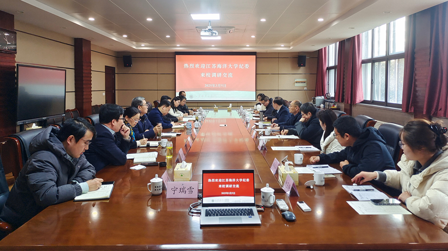 3月5日,江蘇海洋大學紀委來我校調研交流。校紀委書記、派駐監察專員閭浩參加交流座談會,黨委巡察辦公室負責人和校紀委全體人員參加會議。