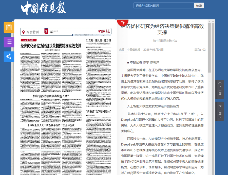 經濟優化研究為經濟決策提供精準高效支撐——訪中科院院士陳木法