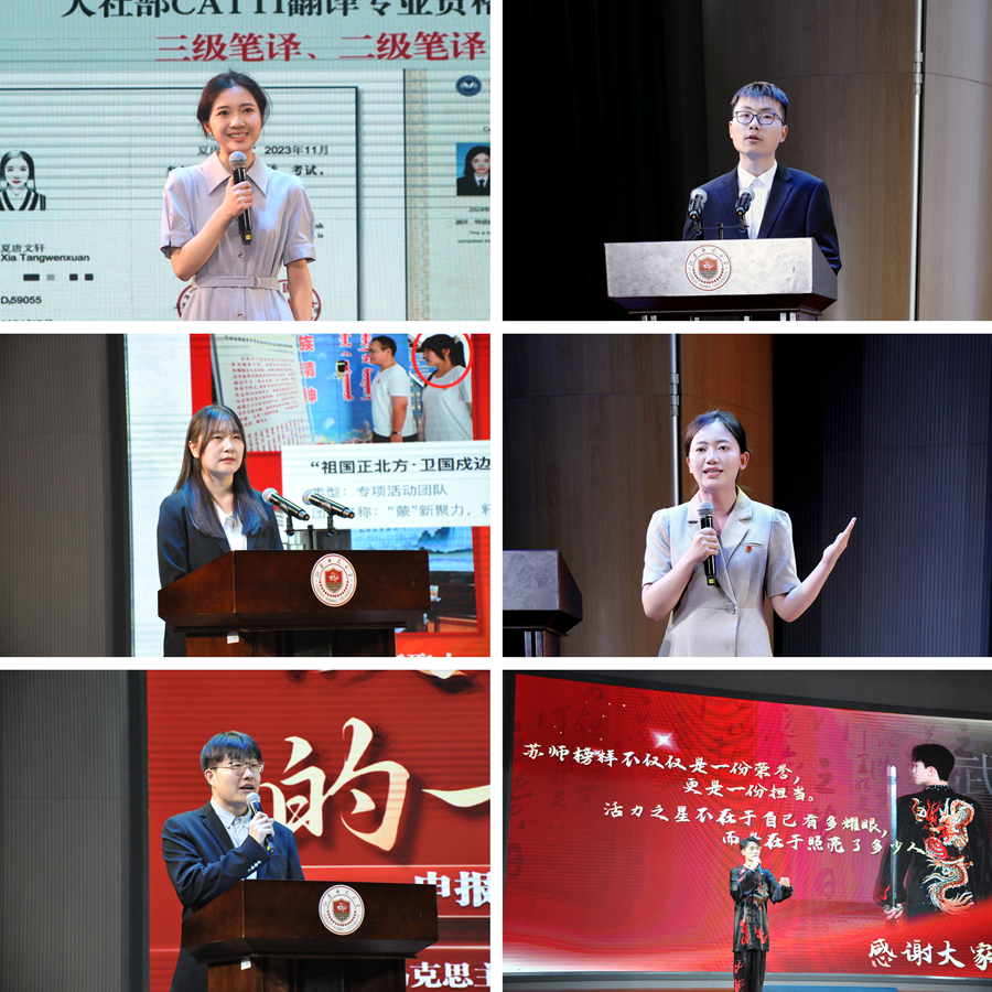 展評現場,33位候選人通過不同形式的個人展示,精彩展現了他們在勤奮學習、服務表率、公益志愿、學術科研、自強不息、文體活動、專業技能、創新創業等方面的事跡。吳佳男同學以優異的成績直博浙江大學,實現學習的自我超越;朱思嘉同學用8篇SCI論文講述獨屬于她的科研故事,耶魯大學讀研成為她科研路上的又一起點;陳昆鵬同學勇擔文化傳承使命,以創新思維推廣武術,展現青年學子的蓬勃朝氣;劉舒娜同學恪守服務本色,以“我在”的使命擔當書寫她的青春故事;白莉娜同學跨越山海,傳承紅色血脈,激昂青春力量,用行動書寫勵志。他們中有篤學不倦,潛心求索的“學業楷模”;有孜孜不倦,成果豐碩的“科研達人”;有多才多藝,充滿朝氣的“活力之星”;有精益求精,追求卓越的“技能狀元”;有心懷大愛,無私奉獻的“公益天使”;有默默付出,不求回報的“服務表率”;有踔厲奮發、篤行不怠的“勵志之星”;有開拓道路,銳意進取的“創業先鋒”,向全校同學展示了蘇師學子勤學向上的精神風貌。