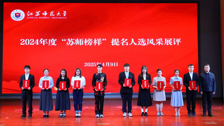 最終,文學院白莉娜等10位同學獲得江蘇師范大學2024年度“蘇師榜樣”,語言科學與藝術學院何戚鵬等23位同學獲2024年度“蘇師榜樣”提名獎,歷史文化與旅游學院郭娜等62位同學獲2024年度“蘇師榜樣”入圍獎。這些可親、可敬、可學的身邊榜樣,彰顯了“崇德厚學、勵志敏行”的校訓精神,激勵了蘇師學子在新時代征程中勇毅前行,讓青春在為祖國、為民族、為人民的不懈奮斗中綻放絢麗之花。