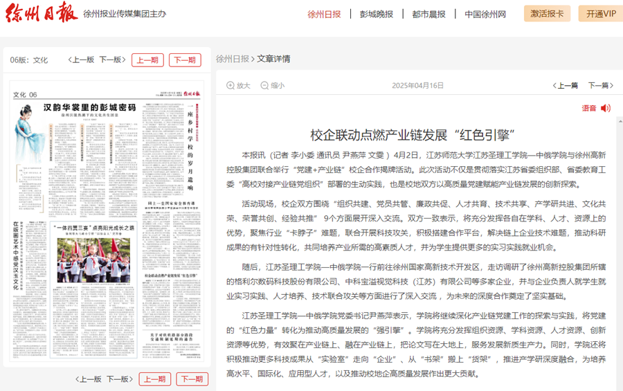 徐州日報4月16日報道我校校企聯動助推產業鏈發展,報道內容如下:
