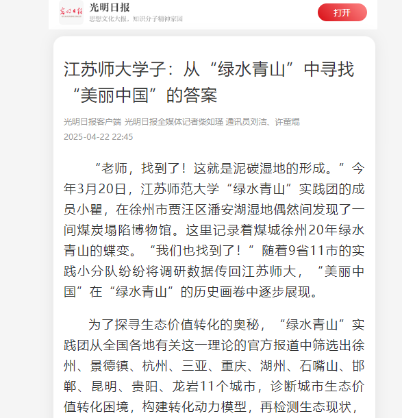 江蘇師大學子:從“綠水青山”中尋找“美麗中國”的答案