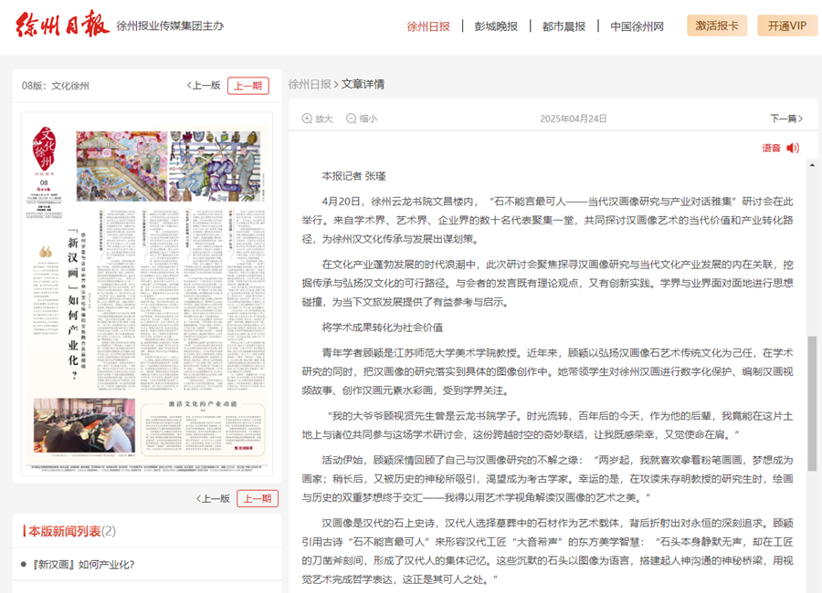 徐州日?qǐng)?bào)4月24日?qǐng)?bào)道我校與徐州市政府共建徐州云龍書(shū)院舉辦的當(dāng)代漢畫(huà)像研究與產(chǎn)業(yè)對(duì)話雅集研討會(huì),并采訪我校專(zhuān)家學(xué)者,報(bào)道內(nèi)容如下: