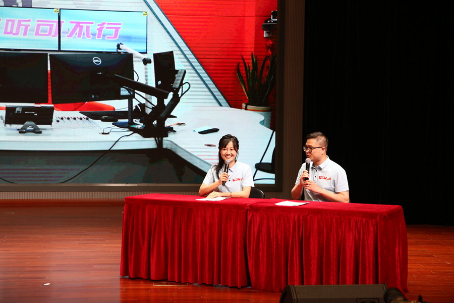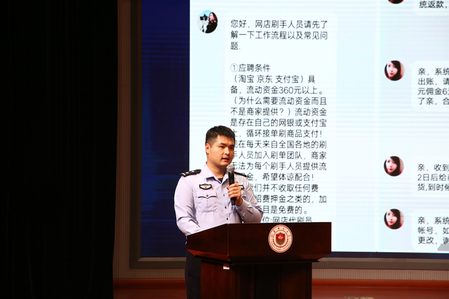 儀式上,徐州市公安局反通訊網絡詐騙中心劉旭警官現場講述真實騙局;中國工商銀行徐州泉山支行客服經理喬夢欣在線教學使用數字貨幣的安全使用技巧;徐州廣電反詐明星組合蘇蘇和小龍通過幽默生動的現場脫口秀和反詐小短劇教大家如何識破電信網絡詐騙伎倆;《張慧幫你問》主持人張丹茜以視頻形式曝光“快遞陷阱”;我校雷雨劇社的“反詐情景劇”揭示了校園內大學生容易遇到的各種電信網絡詐騙形式,為同學們發出警醒。