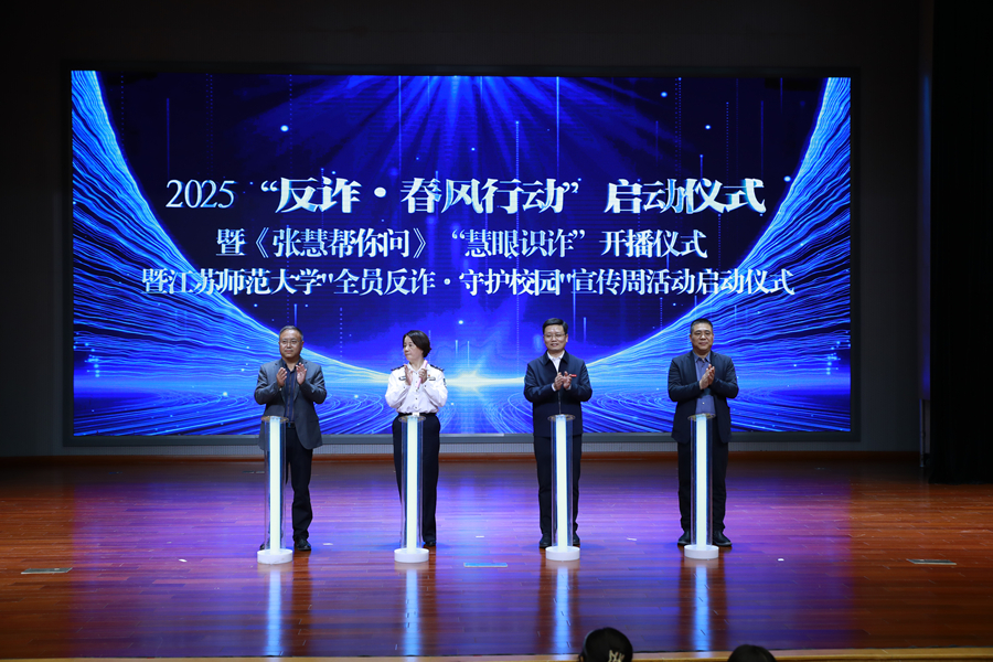 為深入貫徹落實上級工作部署和省、市打擊治理電信網絡新型違法犯罪工作會議精神,有效遏制當前電信網絡詐騙犯罪高發態勢,切實維護人民群眾財產安全,進一步提高我校師生防詐反詐能力,4月23日下午,由徐州市公安局、中國人民銀行徐州市分行、徐州廣播電視傳媒集團和我校聯合舉辦的徐州2025“反詐?春風行動”暨江蘇師范大學防詐宣傳周正式啟動,啟動儀式在我校馬可音樂廳舉行。