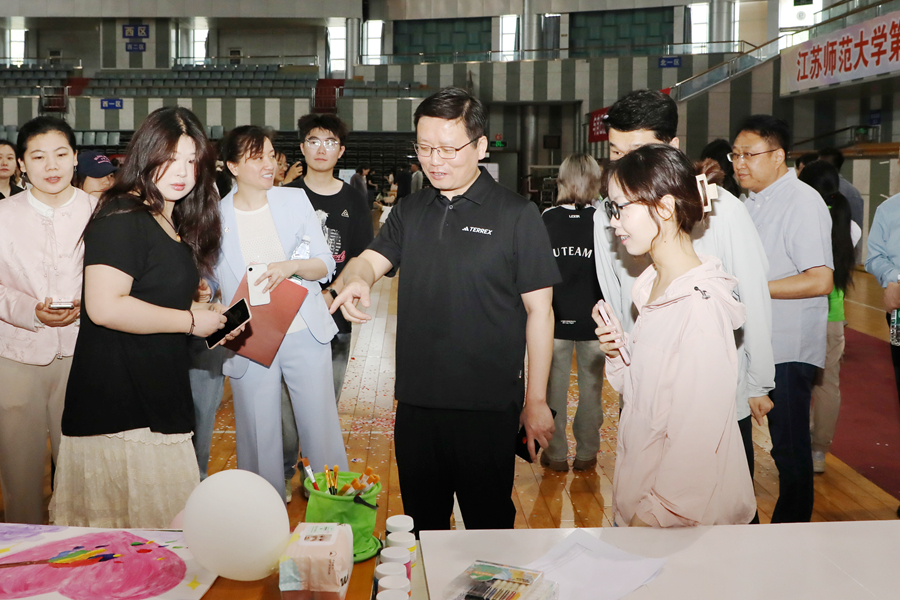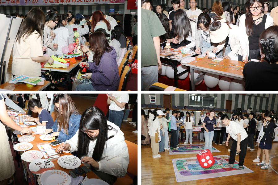 隨著五彩繽紛的禮花彩帶在空中綻放,江蘇師范大學(xué)2025年第二十四屆“5·25”心理健康教育文化月正式啟動(dòng)。啟動(dòng)儀式后,領(lǐng)導(dǎo)師生們一起沐光同行,共同參與各學(xué)院和校心理健康教育中心舉辦的特色心理活動(dòng)。物理與電子工程學(xué)院開(kāi)展的“心光手作、燈影傳情”手工制作,校心理中心開(kāi)展的“舒展身心、脆皮養(yǎng)生”艾草錘diy,敬文書(shū)院開(kāi)展的“快樂(lè)加油站——心理游園會(huì)”,商學(xué)院開(kāi)展的“勇敢愛(ài)自己”5·25師生快樂(lè)跑,生命科學(xué)學(xué)院開(kāi)展的“向太陽(yáng)借一束光”藍(lán)曬手作等現(xiàn)場(chǎng)活動(dòng),吸引廣大師生駐足參與,整個(gè)體育館充滿(mǎn)了歡快的笑聲。