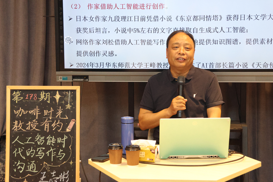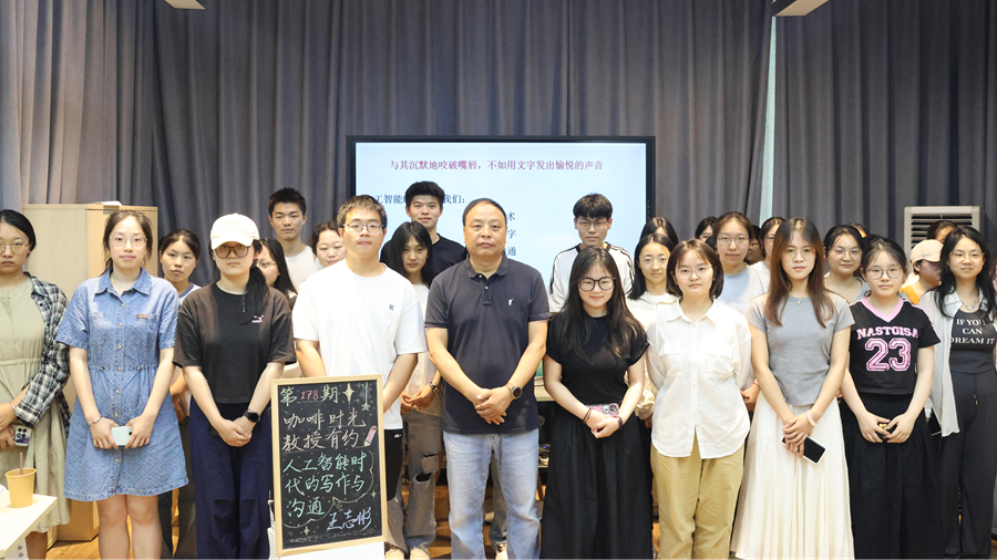 5月29日下午,第178期“咖啡時光·教授有約”活動在泉山校區三食堂六點匯舉行。文學院王志彬教授就“人工智能時代的寫作與溝通”這一主題與在場同學進行交流。