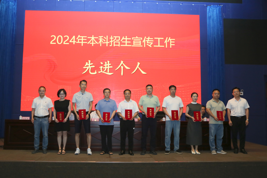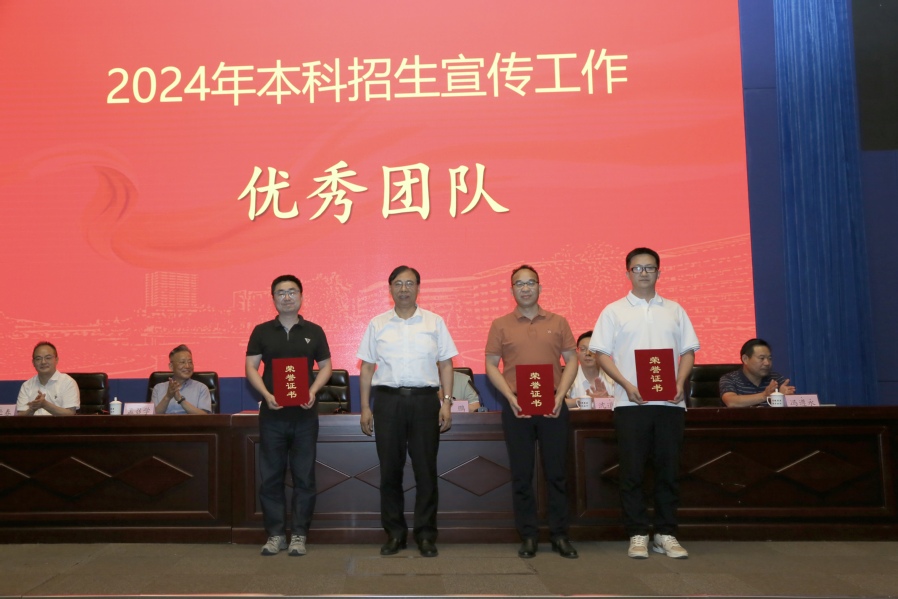 杜增吉在會上講話。他首先肯定了2024年的招生工作成效,向受表彰的2024年招生宣傳優(yōu)秀團隊和先進個人表示祝賀,向奮戰(zhàn)在招生一線的師生員工表示感謝。結(jié)合即將開展的新一輪招生宣傳工作,杜增吉指出:一要提高站位,胸懷大局,切實增強責任感。各部門、各學院要牢固樹立“全校一盤棋”的思想,把本科招生宣傳作為當前的重點工作來抓,確保優(yōu)質(zhì)生源持續(xù)匯聚;二要靶向發(fā)力,深挖特色,全面提升精準度。聚焦辦學特色和優(yōu)勢學科,深入挖掘?qū)W校人才培養(yǎng)方面的優(yōu)勢亮點,針對不同受眾群體采取差異化宣傳策略,精心設(shè)計宣傳內(nèi)容,持續(xù)增強學校吸引力;三要打破定式,創(chuàng)新方式,著力拓展新路徑。要把握融媒體時代流量特征,創(chuàng)新性開展招生宣傳工作,通過線上線下聯(lián)動、校內(nèi)校外協(xié)同、師生校友互動的全方位宣傳模式,讓宣傳內(nèi)容更生動、形式更豐富、效果更顯著,實現(xiàn)招生宣傳效益的最大化;四要加強協(xié)同,全員參與,全力構(gòu)建新格局。各學院、各部門要立足實際、強化擔當,統(tǒng)籌推進招生宣傳與業(yè)務工作深度融合,選派精干力量參與宣傳,鼓勵專家教授主動發(fā)聲,在校師生積極代言,各部門通力協(xié)作,形成齊抓共管的良好局面。