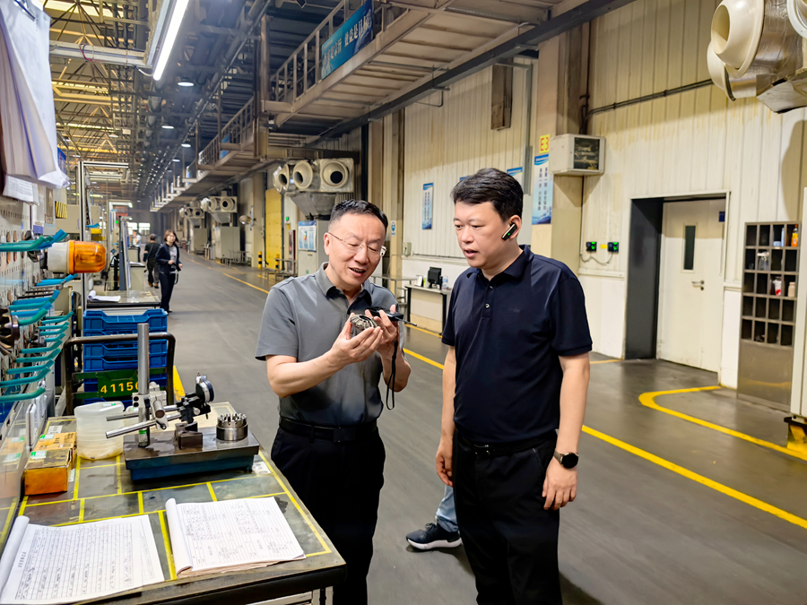 在姜堰區,閭浩重點走訪深交所創業板上市公司—江蘇太平洋精鍛科技股份有限公司,深入生產車間考察智能化生產線與研發中心,就學科專業建設、技術攻關合作、實習實訓基地共建等事項展開交流,雙方現場達成產學研項目對接的合作意向。
