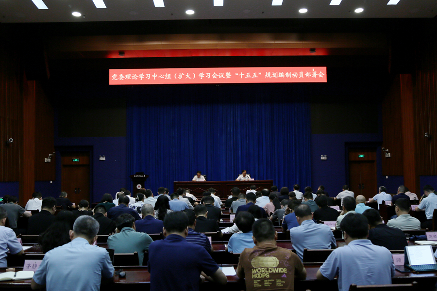 8月8日下午,學校召開黨委理論學習中心組(擴大)學習會議暨“十五五”規劃編制動員部署會。會議深入學習習近平總書記關于“十五五”規劃編制工作的重要指示精神,解讀學校“十五五”規劃編制方案,交流專項工作思路和學院規劃編制思路。全體校領導出席會議,各學院黨政負責人、各部門及直屬業務單位負責人、“十五五”規劃編制相關部門人員參加會議。校黨委書記芮國強主持會議并講話,校長杜增吉部署規劃編制工作。