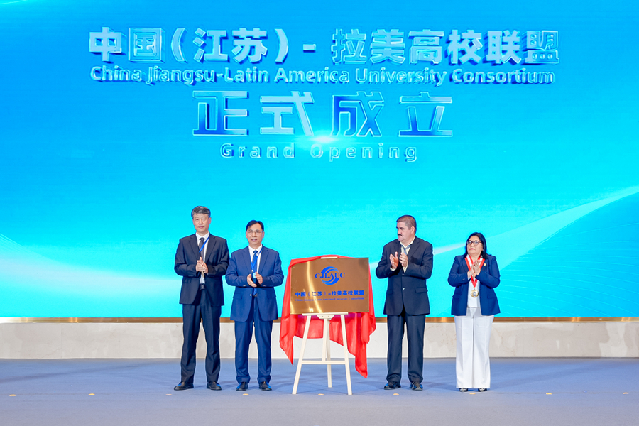 作為本屆論壇發布的兩項重要成果之一,由我校作為會長單位聯合22所國內知名高校和33所拉美高校共同發起的“中國(江蘇)—拉美高校聯盟”正式成立。校長杜增吉、聯盟秘書長單位南京特殊師范學院黨委書記黃軍偉、秘魯南利馬國立科技大學校長格拉迪絲·克魯斯、古巴蛋白植物與天然產品研究中心主任曼努埃爾·索布里諾共同為聯盟揭牌。