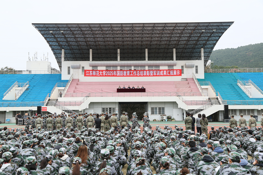 10月24日上午,2025年國防教育工作總結表彰暨軍訓成果展示活動在泉山校區田徑場舉行。校黨委常委、副校長商亮,徐州軍分區戰備建設處處長李威,駐徐某旅副政委杜明亮、教導員劉江波,全體承訓教官,學校相關部門負責同志,各學院黨委副書記、負責國防教育工作的輔導員,泉山校區2025級全體參訓學生和云龍校區參訓學生代表共同參加活動。