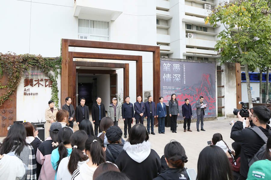商亮在開(kāi)幕式上致辭,他向?yàn)楸敬螘?shū)畫(huà)展付出辛勤勞動(dòng)的工作人員以及所有傾情創(chuàng)作的師生、校友們表示感謝,闡釋了舉辦此次書(shū)畫(huà)展的重要意義。他表示,舉辦此次書(shū)畫(huà)展,用最雅致、最真誠(chéng)的筆墨,為學(xué)校慶生,是一次家人之間才情的展示與心靈的對(duì)話,以藝術(shù)為紐帶串聯(lián)起我們共同的記憶與對(duì)未來(lái)的期許。參展作品的一筆一劃、一草一木、一景一物,無(wú)不是師生校友內(nèi)心世界的真誠(chéng)映照,共同展現(xiàn)了江蘇師范大學(xué)大家庭強(qiáng)大的凝聚力、蓬勃的創(chuàng)造力。最后,商亮寄語(yǔ)全體師大人:“讓我們將這份對(duì)‘家’的摯愛(ài),化為前行的動(dòng)力。以知識(shí)充實(shí)頭腦,以藝術(shù)滋養(yǎng)心靈,共同把我們這個(gè)家建設(shè)得更加美好、更有品位、更富魅力。”