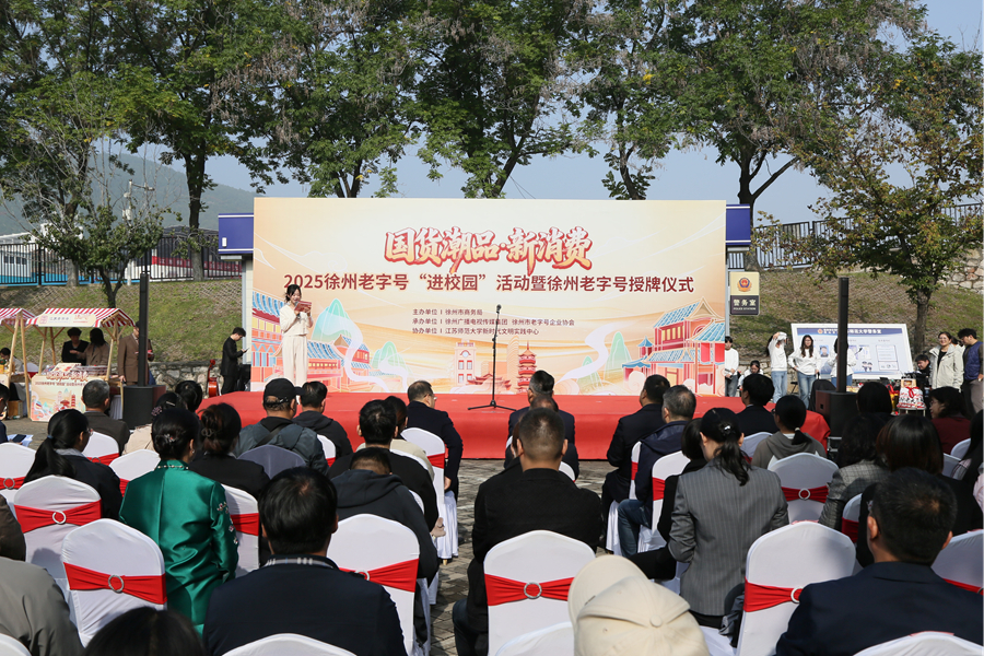 11月1日,由徐州市商務局主辦,徐州廣播電視傳媒集團、徐州老字號協會承辦,江蘇師范大學新時代文明實踐中心協辦的“國潮國貨·新消費”徐州老字號“三進三促”活動暨徐州老字號授牌儀式在我校舉行。校黨委常委、宣傳部部長孟召學,徐州市商務局黨委委員、四級調研員張宗強,徐州廣播電視傳媒集團黨委委員、副臺長李為東出席活動。