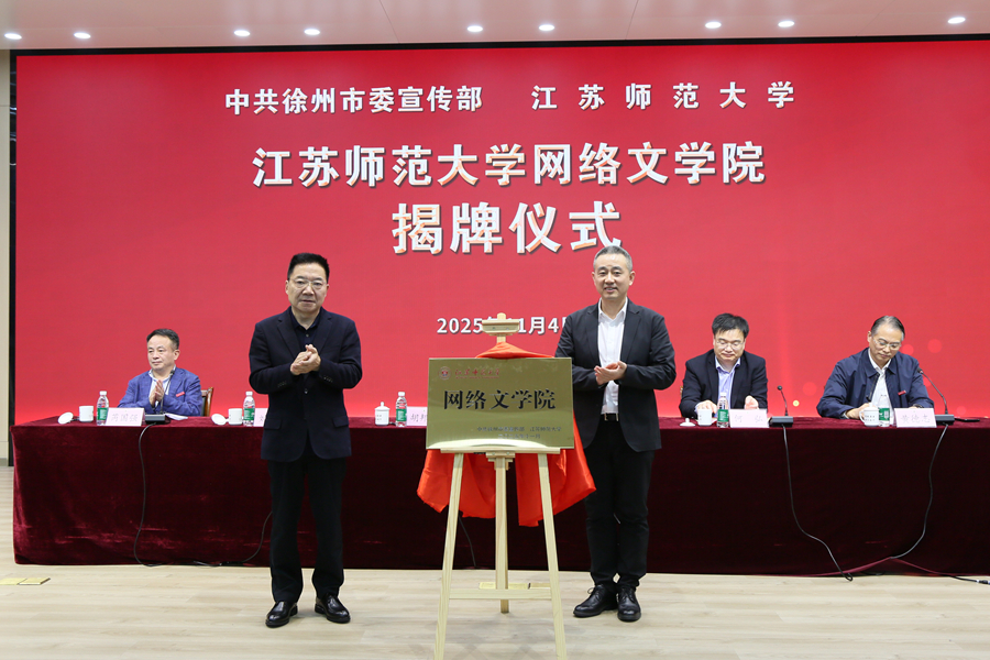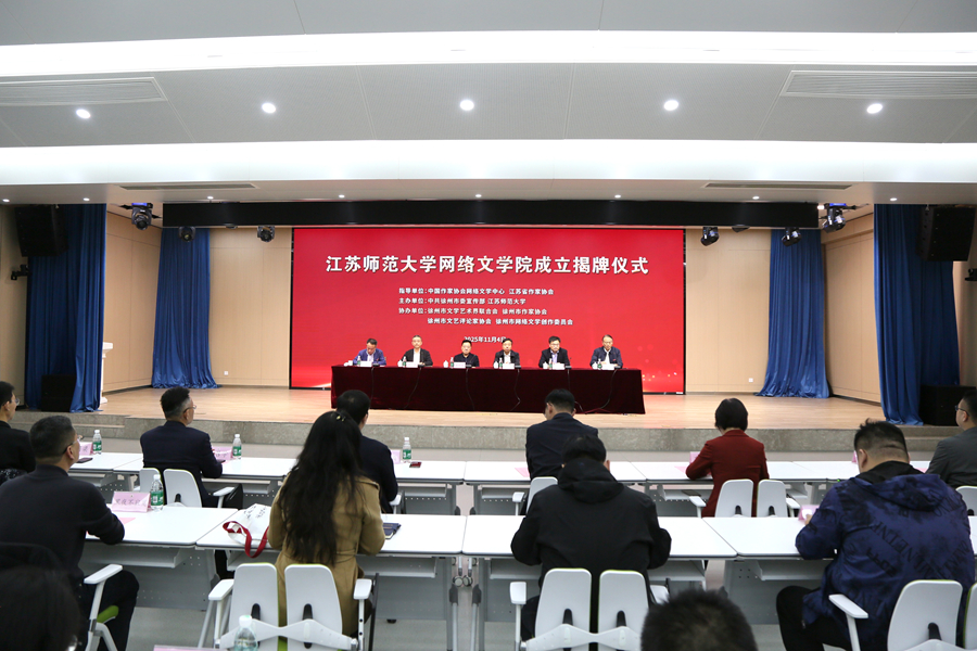 11月4日下午,江蘇師范大學網絡文學院揭牌成立。中國作家協會黨組成員、書記處書記胡邦勝,中國作家協會網絡文學中心主任何弘,江蘇省作家協會黨組書記、書記處第一書記鄭焱,徐州市委常委、宣傳部部長劉偉,我校黨委書記芮國強、副校長黃德志出席成立儀式。來自全國各地的學者、網絡作家及我校師生代表參加儀式。