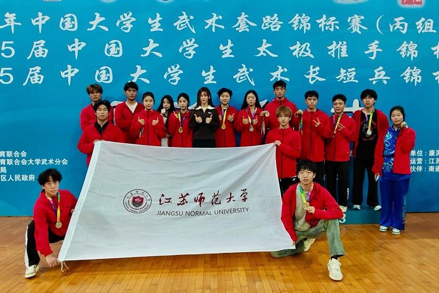 我校武術代表隊在比賽中發揮出色,憑借精湛的技藝與頑強拼搏的精神,共斬獲金牌2枚、銀牌6枚、銅牌5枚,并取得第四名3項、第五名2項、第六名6項、第七名2項、第八名3項的優異成績,在全國舞臺上充分展現了江蘇師范大學學子的卓越風采。