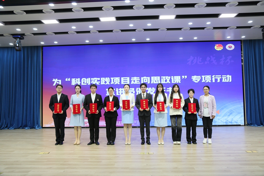 會上,商亮為“挑戰杯”競賽專家庫入庫教師頒發聘書,卜路為“科創實踐項目走向思政課”專項行動宣講員頒發證書;參會師生共同觀看了我校第十九屆“挑戰杯”競賽參賽回顧視頻;部分國賽參賽項目進行了項目匯報展示;參賽師生通過《挑戰歸來話挑戰》主題訪談形式分享了他們的難忘經歷,展現了勇于創新創造、矢志科創報國的責任與擔當。