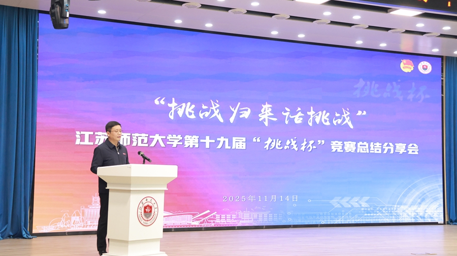 11月14日,“挑戰歸來話挑戰”江蘇師范大學第十九屆“挑戰杯”競賽總結分享會在路演大廳舉辦。校黨委常委、副校長商亮,團省委高校工作部部長卜路出席會議,相關學院負責同志、參賽師生代表、各學院團委書記等參加會議。