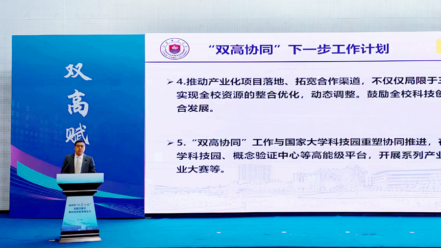 趙鵬在開幕式上介紹了我校“雙高協同”工作進展與下一步規劃。他表示,學校將堅持以產業需求為導向、以制度創新為支撐,圍繞“蹲點式”調研、激發創新活力、強化政策保障、整合全校資源等重點方向持續發力,全力推動“雙高協同”工作取得實效,為校地融合與協同發展注入新動能。