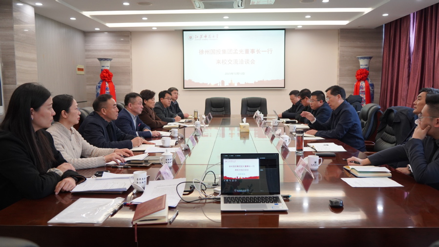 12月12日下午,徐州國投集團黨委書記、董事長孟光一行來校就深化校企合作事宜進行交流洽談。校黨委書記芮國強出席會議。學校和企業有關部門負責同志參加活動。