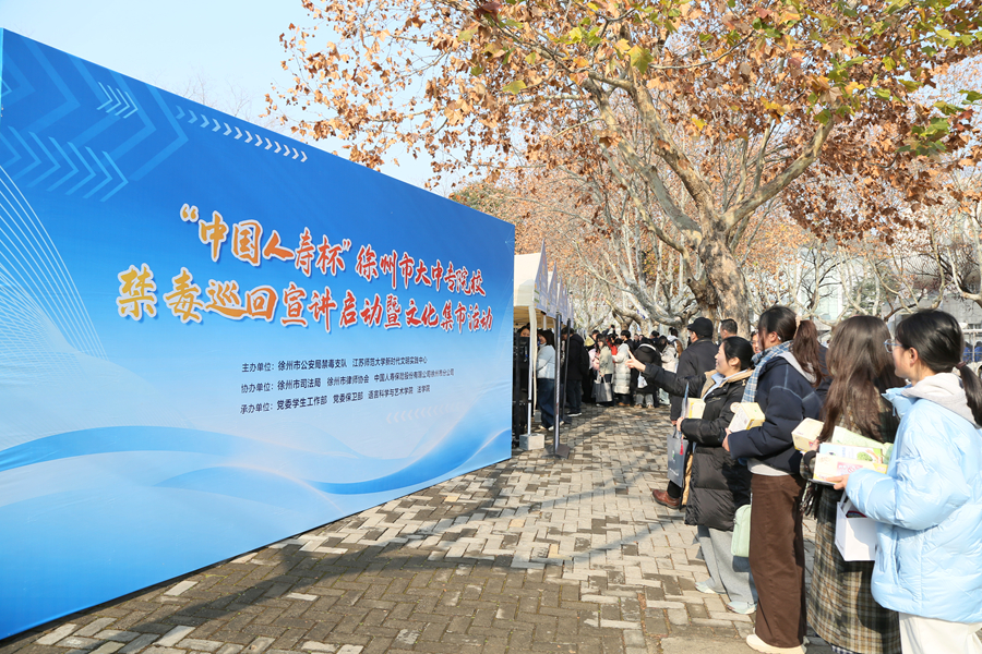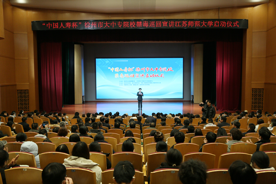 12月24日下午,由徐州市公安局禁毒支隊、江蘇師范大學新時代文明實踐中心主辦的“中國人壽杯”徐州市大中專院校禁毒巡回宣講啟動儀式在江蘇師范大學舉行。校黨委常委、宣傳部部長孟召學,徐州市公安局禁毒支隊支隊長葛曉華出席活動,全市大中專院校相關負責人及禁毒志愿者學生代表約400人參加活動。