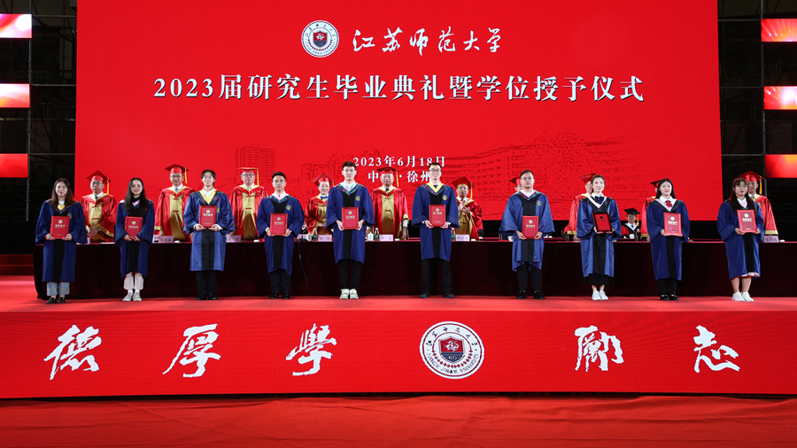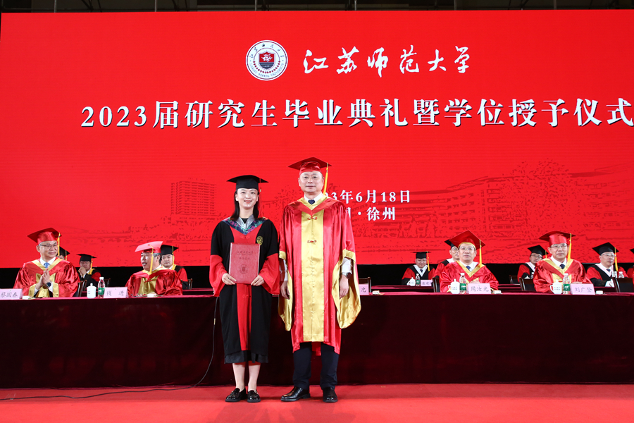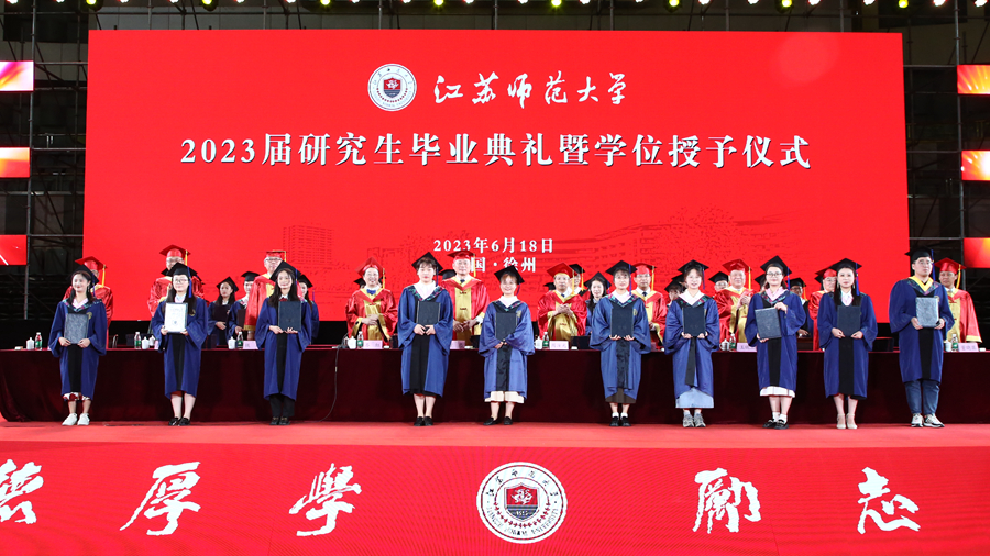 6月18日上午,江蘇師范大學(xué)2023屆研究生畢業(yè)典禮暨學(xué)位授予儀式在泉山校區(qū)體育館隆重舉行。全體校領(lǐng)導(dǎo)出席典禮,校學(xué)位評定委員會委員、承擔(dān)研究生培養(yǎng)任務(wù)的各學(xué)院領(lǐng)導(dǎo)、研究生導(dǎo)師代表、2023屆全體畢業(yè)研究生、往屆畢業(yè)研究生代表、研究生親屬代表、非畢業(yè)年級研究生代表參加典禮。校黨委副書記岑紅主持典禮。