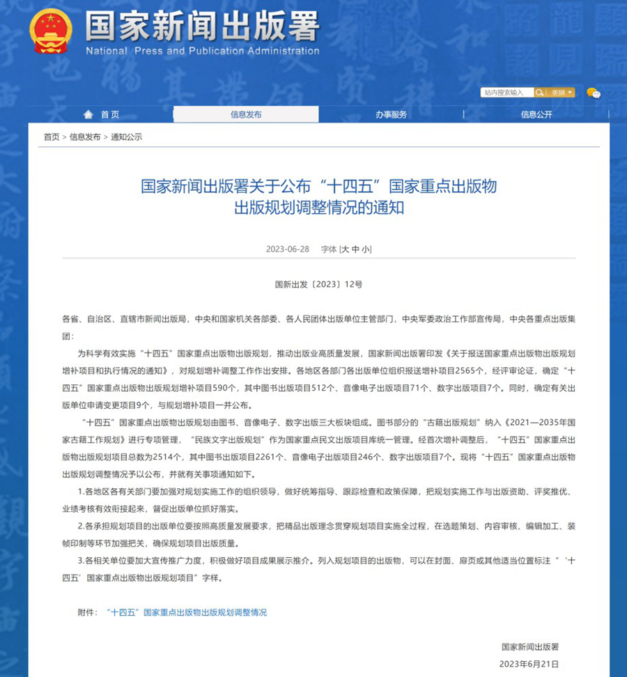 “十四五”國家重點出版物出版規劃是我國出版業最高級別的出版專項規劃,旨在進一步提升國家精品出版能力,推動出版業高質量發展,助力科技強國和文化強國建設。“十四五”國家重點出版物出版規劃圖書項目分為哲學社會科學、文學藝術、自然科學與工程技術、未成年人出版物、民族文字、古籍等子規劃項目,其中,哲學社會科學出版規劃此次共1000余項參與評選,最終200項入選。