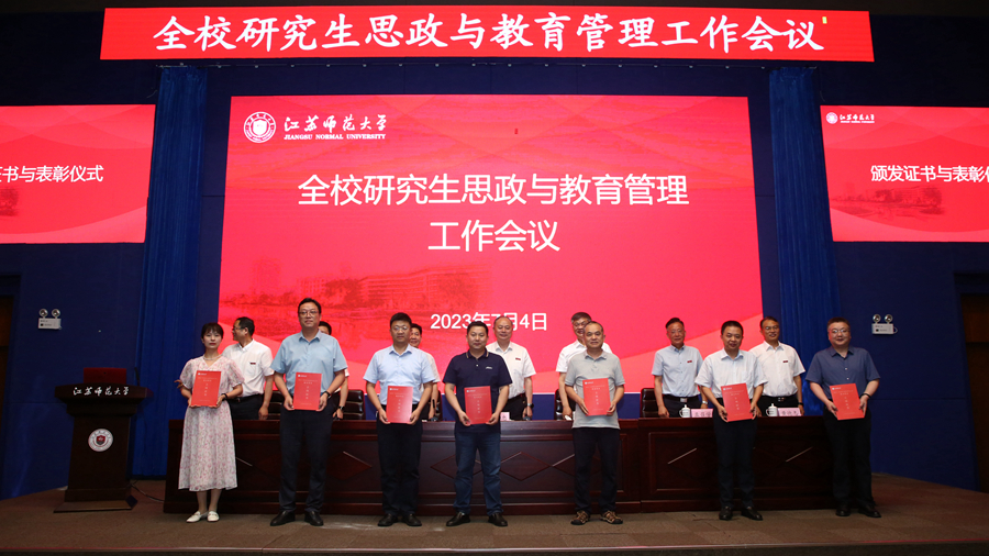 會上,黨委研究生工作部匯報了研究生思政與教育管理工作,回顧總結近年來工作取得的成績、面臨的主要問題,提出了未來工作的思路與設想。智慧教育學院、歷史文化與旅游學院有關同志就學院層面研究生思政與教育管理工作的思路、舉措、創新、特色進行交流發言。會議對2023年研究生就業促進項目立項、承辦2023年“中國研究生創新實踐系列大賽”校內立項和第二屆江蘇省社會實踐和志愿服務“十佳研究生”“十佳研究生團隊”進行了表彰。