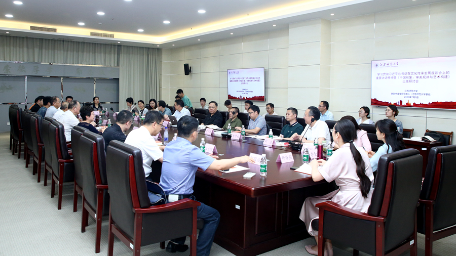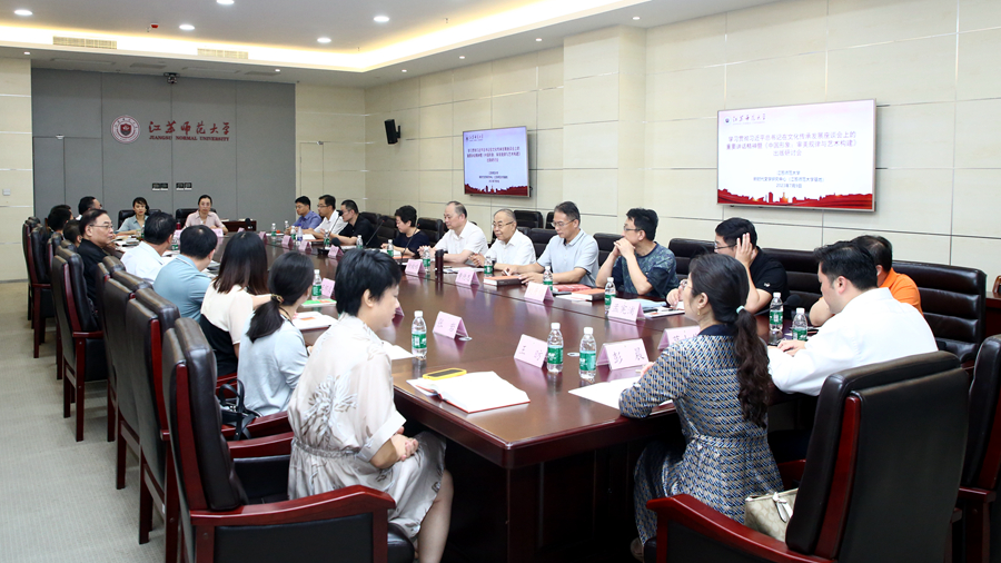 7月9日上午,學(xué)習(xí)貫徹習(xí)近平總書記在文化傳承發(fā)展座談會上重要講話精神暨《中國形象:審美規(guī)律與藝術(shù)構(gòu)建》出版研討會在我校分析測試中心會議室舉行。本次研討會由中國作家協(xié)會新時代文學(xué)研究中心、江蘇師范大學(xué)共同主辦。來自南京大學(xué)、武漢大學(xué)、南京師范大學(xué)、揚州大學(xué)、中國礦業(yè)大學(xué)、徐州醫(yī)科大學(xué)、徐州工程學(xué)院、高等教育出版社、徐州報業(yè)傳媒集團等相關(guān)單位的學(xué)者、作家、記者濟濟一堂,共同圍繞習(xí)近平總書記在文化傳承發(fā)展座談會上的講話與《中國形象:審美規(guī)律與藝術(shù)構(gòu)建》展開深入交流研討。