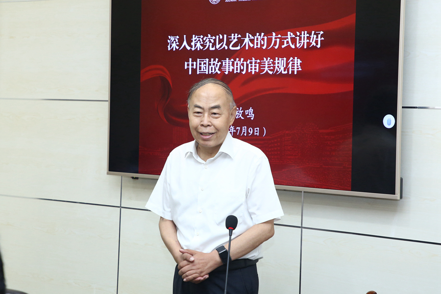 校人文社會科學(xué)學(xué)院負責同志圍繞學(xué)習(xí)習(xí)近平總書記在文化傳承發(fā)展座談會上重要講話精神作了解讀報告。國家社科基金重點項目負責人、江蘇師范大學(xué)文學(xué)院徐放鳴教授作了《深入探究以藝術(shù)的方式講好中國故事的審美規(guī)律》學(xué)術(shù)報告,簡要概述了《中國形象:審美規(guī)律與藝術(shù)構(gòu)建》一書的出版背景、研究論域、主要內(nèi)容和現(xiàn)實意義。高等教育出版社編輯張巖介紹了專著從選題到出版的相關(guān)情況。