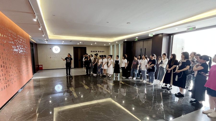 會后,商丘師院師生共同參觀了敬文圖書館、教育名園、“啟”雕塑、物電學院協同創新實驗室、資源保障中心遠程教學管理系統、校史館等,營員們紛紛表示,江蘇師范大學的校園文化氛圍濃郁,極大的激發了他們對學校的熱情和向往。我校研究生代表們分享了在校學習和生活的經驗,與商丘師院學生進行了全方位、多角度、高質量的深入交流,他們表示,此次夏令營收獲滿滿,更加堅定了自己報考江蘇師范大學的信念。