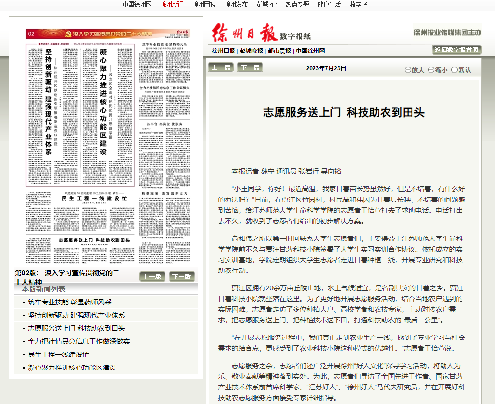 徐州日報7月23日報道我校大學生暑期社會實踐活動,報道內容如下: