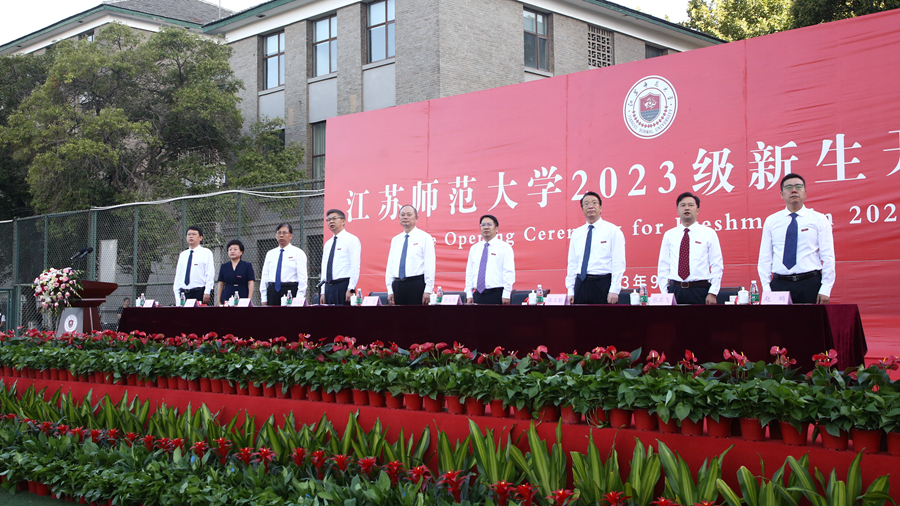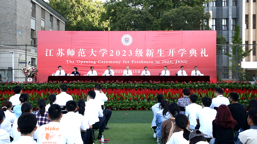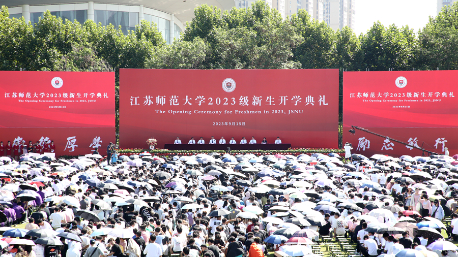 莘莘學子聚蘇師,昂首闊步新征程。在這金秋九月,我校迎來了8094名2023級新同學。9月15日上午,江蘇師范大學2023級新生開學典禮隆重舉行。在校全體校領導出席典禮,校機關部門主要負責同志,各學院黨政負責人、副書記、輔導員,教師代表,校友代表,老生代表,以及全體2023級本科生和碩士、博士研究生參加典禮。典禮在泉山校區田徑場和云龍校區體育場分別舉行。校黨委副書記蔡國春主持典禮。