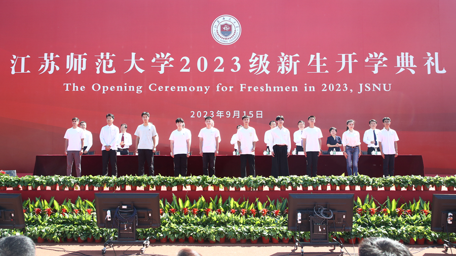 “潮平兩岸闊,風正一帆懸”,大學是同學們職業生涯的開端,也是同學們航行人生這片大海的揚帆處。同時廣大新同學的到來也為江蘇師范大學注入了新鮮血液,為學校事業發展輸送了澎湃動力。作為新生代表的數學與統計學院2023級本科生吳鈺同學和教育科學學院2023級本科生曹佳怡同學分別發言,她們號召全體同學樹立遠大理想、努力學習本領,為建設富強民主文明和諧美麗的社會主義現代化國家而奮斗。