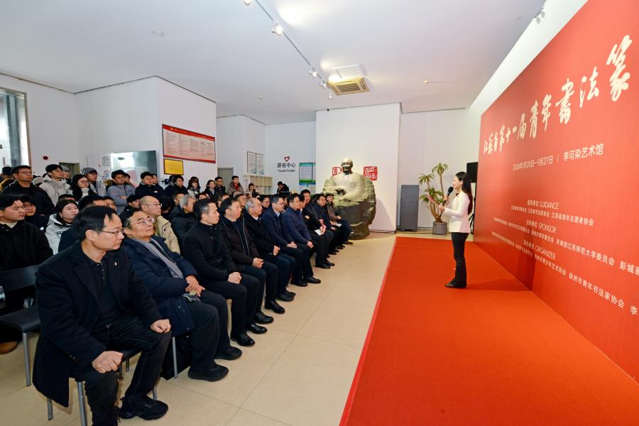 1月20日,由我校與江蘇省青年書法家協會、徐州市文學藝術界聯合會等單位聯合主辦的江蘇省第十一屆青年書法篆刻作品展在徐州李可染藝術館隆重開幕。團省委副書記、省青聯主席張永意出席開幕式并講話,徐州市委宣傳部副部長竇銅順致辭,我校黨委常委、副校長商亮,省政府參事、省書協副主席、省青書協名譽主席劉燦銘,省書協副主席王偉林、金丹,省青年書協主席、我校美術學院教師張磊等嘉賓以及徐州市有關單位負責人、全省青年書法工作者及藝術界代表近100人出席開幕式。我校團委、美術學院負責同志參加了開幕式。 活動充分肯定了近年來我省青年書法篆刻事業取得的豐碩成果,并對廣大青年書法家寄予殷切期望。要堅定文化自信,堅持守正創新,自覺擔負起新的文化使命;要深入傳統、精研經典,不斷提升藝術修為與創作水準;要緊扣時代脈搏,用手中筆墨描繪新時代氣象、書寫新征程故事,讓書法藝術在服務社會、服務青年中煥發新的光彩。活動倡議青年書法工作者志存高遠、德藝雙修,努力創作出更多無愧于時代的精品力作,為繁榮發展江蘇書法事業、推進文化強省建設貢獻青春智慧和力量。 張永意、商亮、劉燦銘、竇銅順等領導共同為展覽揭幕。與會領導為優秀作品作者代表頒發了證書。開幕式上還設置了優秀作者代表分享、青年志愿主題書法作品贈送、為青少年贈送新年書法作品等環節,展現了青年書法家服務社會、傳承文化的擔當。 開幕式后,與會人員一同參觀了展覽。當日還舉辦了“江蘇省青年書法創作現狀與未來座談會”,圍繞青年書法人才培養與創作發展進行了深入交流。 本次展覽是我校深化與地方美育工作交流、發揮高校美育服務社會職能的一次重要實踐活動。展覽集中展示了近千件投稿作品中精選出的佳作,生動呈現了江蘇青年書法篆刻工作者的最新創作成果與蓬勃藝術風貌。近日展覽將持續向公眾開放。