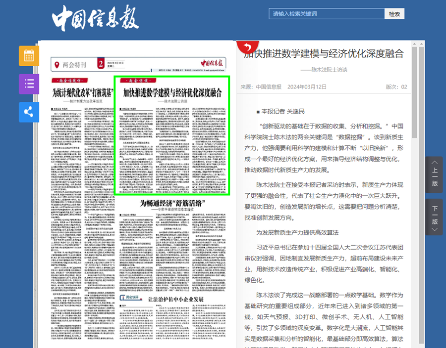 中國信息報3月12日報道對我校陳木法院士的訪談,報道內容如如下: