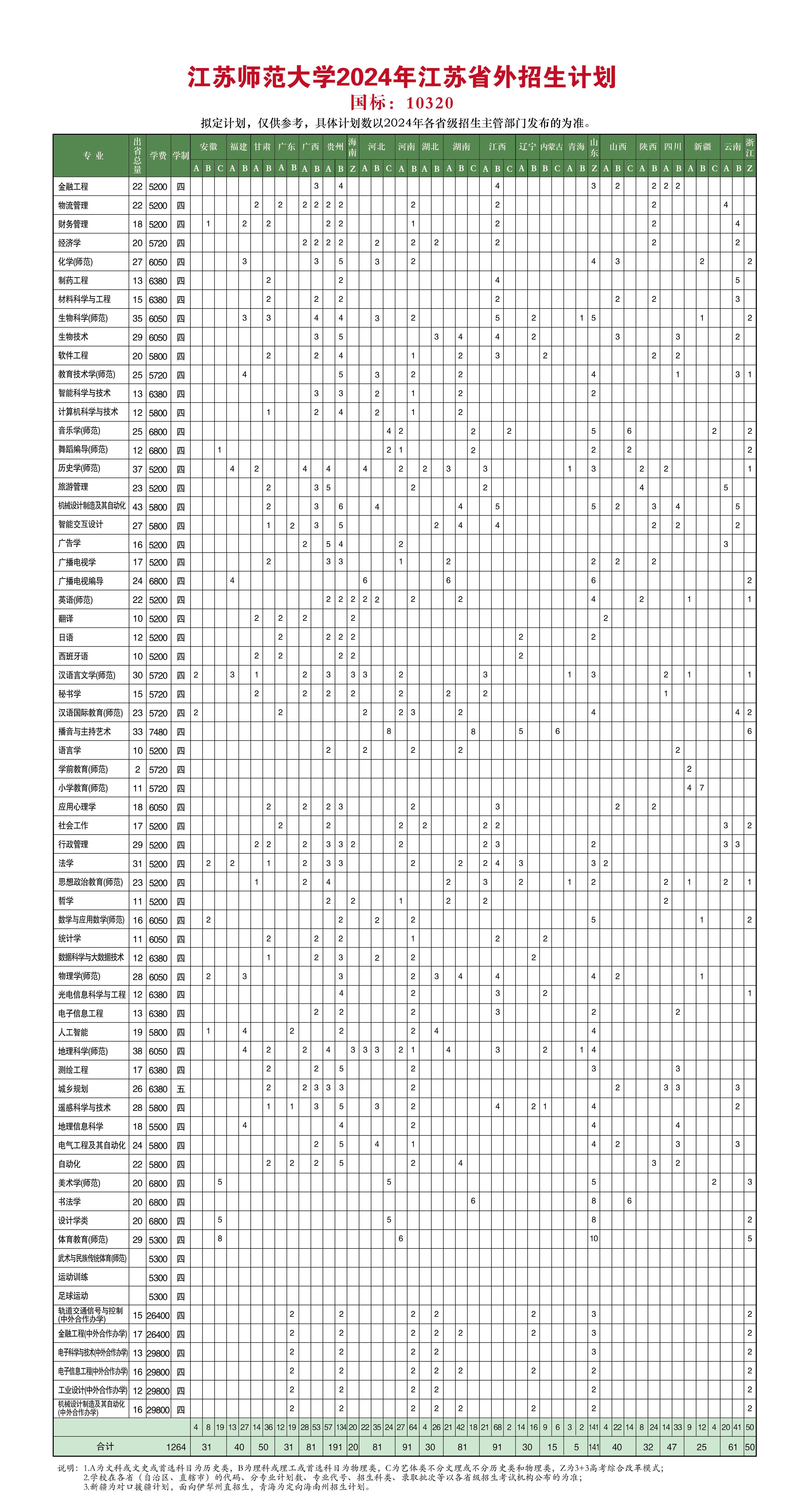 江蘇師范大學2024年江蘇省外招生計劃