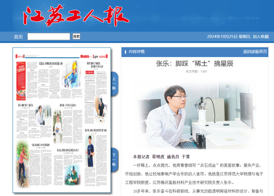 江蘇工人報10月25日報道我校張樂教授科研事跡,報道內容如下: