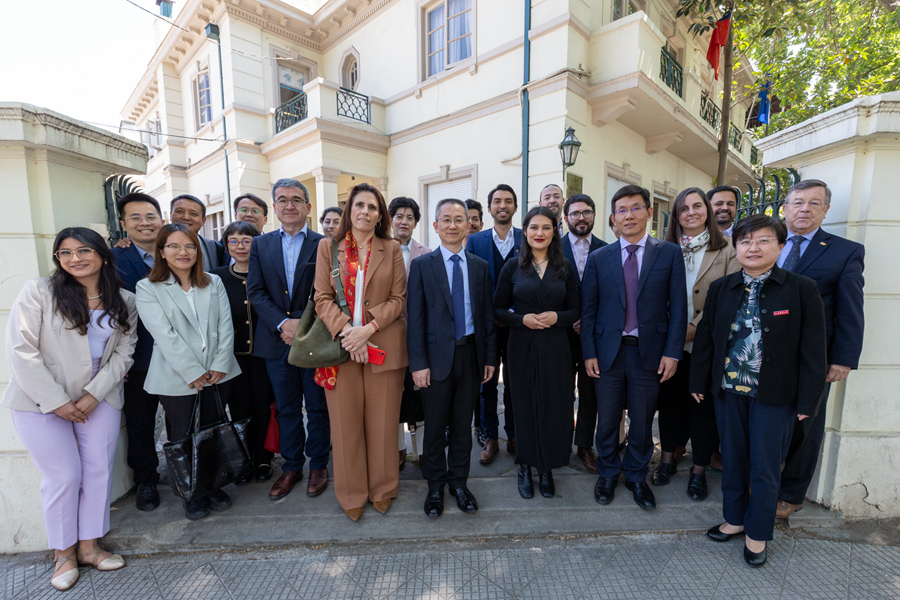 2024年10月21日上午,我校作為聯合主辦方召開的第七屆中拉文明對話論壇在智利首都圣地亞哥成功舉行。開幕式由智利大學國際問題研究院院長多羅泰婭·洛佩斯教授主持,中國社會科學院副秘書長馬援、中國駐智利共和國大使牛清報現場參會,江蘇省人民政府外事辦公室主任孫軼、當代中國與世界研究院副院長孫敬鑫線上參會,我校副校長婁崢嶸出席開幕式。