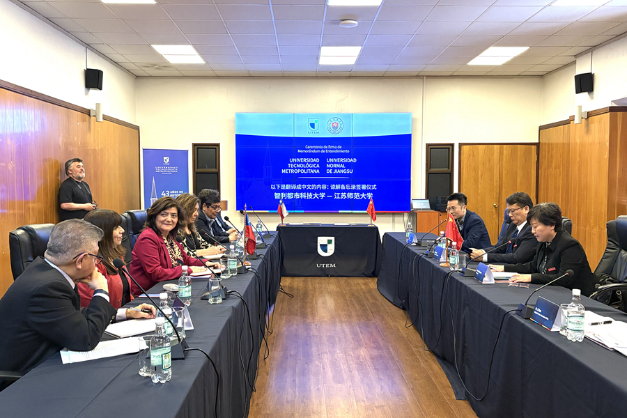 10月21日下午,訪問團來到智利都市科技大學,與Marisol Durán校長、Sandra Gaete副校長團隊圍繞校際交流合作、碩博聯合培養(yǎng)、短期文化體驗、共建國際聯合實驗室及一帶一路研究分院的設立等問題展開了討論。座談會后,兩校簽署了合作協(xié)議。
