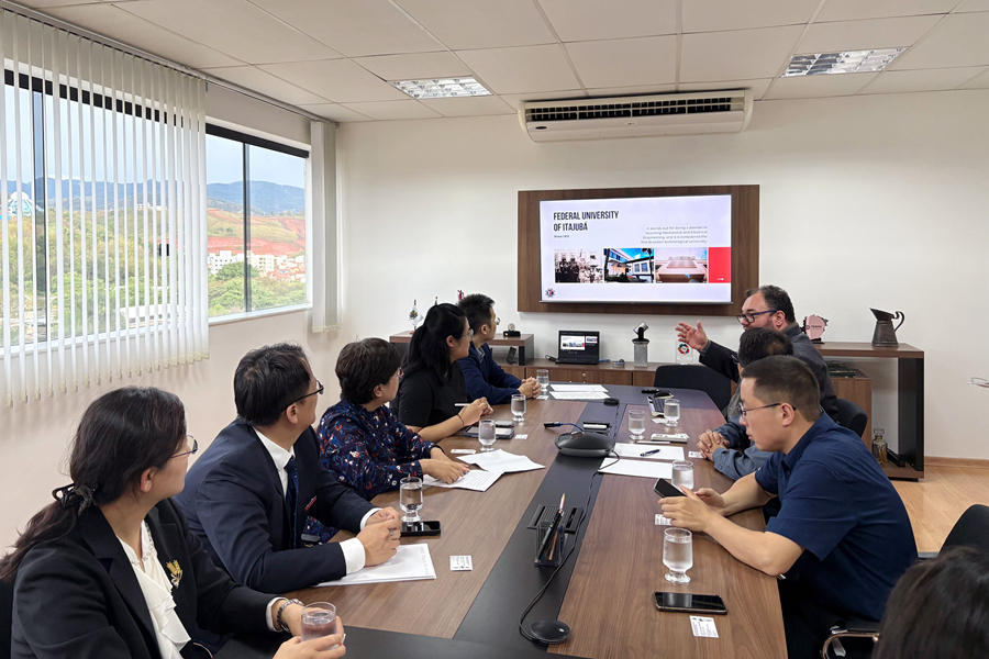 為參加第七屆中拉文明對話論壇,加強我校與海外高水平大學聯系,深化對外合作交流,2024年10月19日至27日,校黨委常委、副校長婁崢嶸率團訪問智利、巴西,先后訪問了智利大學、智利都市科技大學、巴西里約弗魯未嫩塞聯邦大學孔子課堂、伊塔茹巴聯邦大學及徐工集團巴西制造有限公司,拓展了國際合作交流空間。