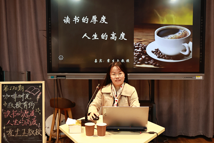 10月30日下午,第170期“咖啡時光?教授有約”活動在泉山校區園丁餐廳“六點匯”實踐基地舉行。文學院霍生玉教授就“讀書的厚度,人生的高度——培養大學生人生格局”這一主題與在場同學進行交流。