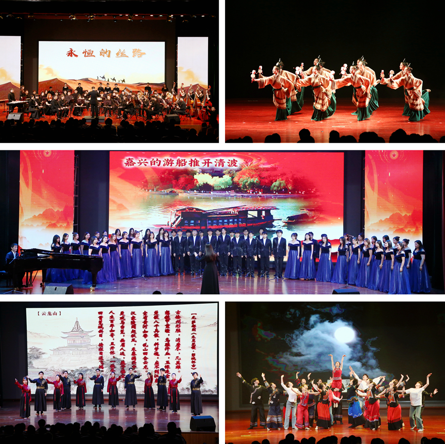 活動(dòng)現(xiàn)場回顧了“每周經(jīng)典導(dǎo)讀”精彩片段,開展了經(jīng)典作品現(xiàn)場誦讀,舉行了“云誦讀”、書評大賽獲獎(jiǎng)作品頒獎(jiǎng)儀式。來自全省高校的師生代表以歌舞、交響管樂演奏等形式,表達(dá)了對大學(xué)生閱讀活動(dòng)的喜愛。同時(shí),我校音樂學(xué)院原創(chuàng)的漢樂舞《鼗鼓樂》、誦讀《漢魂千秋》、舞蹈《情系大涼山》、合唱《百年守望》等文藝節(jié)目精彩展現(xiàn)了徐州漢文化的文脈傳承和城市氣質(zhì),彰顯了當(dāng)代江蘇青年在實(shí)踐中增強(qiáng)干事本領(lǐng),把小我融入祖國的大我、人民的大我之中的豪情壯志。