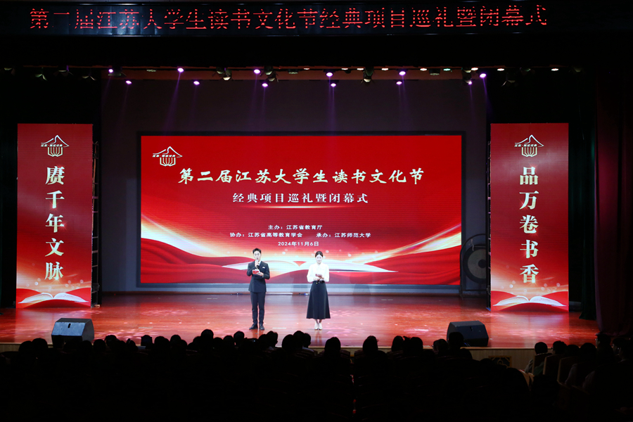 11月6日,第二屆江蘇大學(xué)生讀書文化節(jié)經(jīng)典項(xiàng)目巡禮暨閉幕式在我校馬可音樂廳舉行。省教育廳副廳長楊樹兵出席活動(dòng)并講話。全省部分高校領(lǐng)導(dǎo),我校黨委書記方忠,副校長趙鵬,以及師生代表共計(jì)400余人現(xiàn)場參加閉幕式。