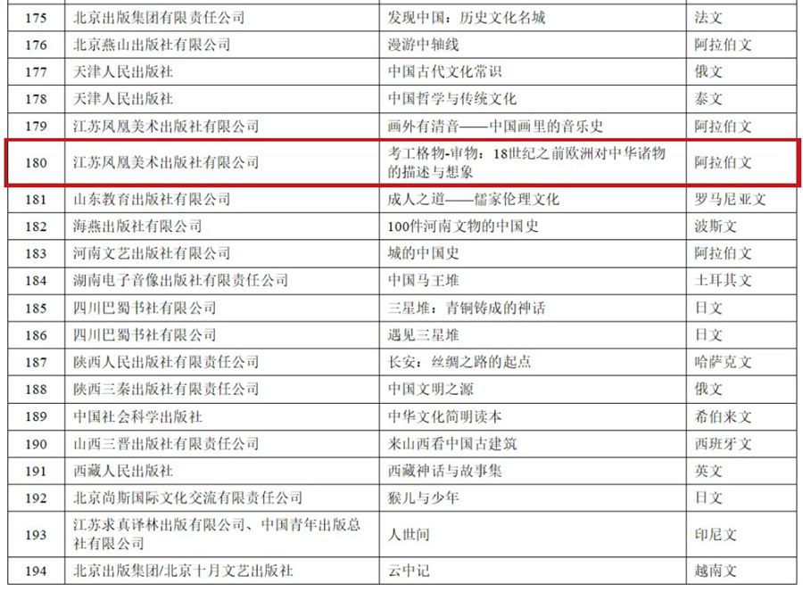 本次成功申報(bào)項(xiàng)目《審物:18世紀(jì)之前歐洲對(duì)中華諸物的描述與想象》,是潘天波教授所著《考工格物》(全5卷含《齊物》《貲物》《審物》《潤物》《開物》,江蘇鳳凰美術(shù)出版社)系列圖書的一種,該書系曾成功入選2022年國家出版基金資助項(xiàng)目,榮獲江蘇省新聞出版局、江蘇省出版協(xié)會(huì)“2023蘇版好書”,并入選2024年第3期人文社科“中文原創(chuàng)好書榜”。這是潘天波教授繼《漆彩——絲綢之路與中國漆器》入選世界著名出版集團(tuán)——德國施普林格出版集團(tuán)(Springer Group)2023年“一帶一路”出版合作典型案例項(xiàng)目(黃山書社,輸出文種為英文)之后,又一成果“走出國門”,是我校在國家“走出去”重點(diǎn)圖書翻譯項(xiàng)目領(lǐng)域的重要突破,展示了我校在用活用好中華優(yōu)秀傳統(tǒng)文化資源、講好中國故事、傳播好中國聲音方面的研究實(shí)力,為促進(jìn)中外文化交流與互鑒作出了積極貢獻(xiàn)。