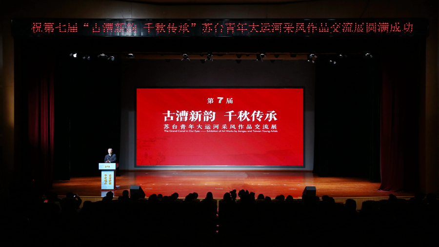 開幕式現(xiàn)場還進(jìn)行了第七屆“古漕新韻 千秋傳承”蘇臺兩地藝術(shù)家同繪大運(yùn)河美術(shù)作品展獲獎作品頒獎和揭幕。