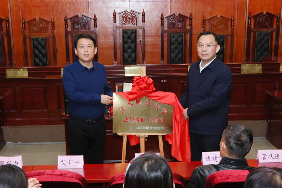 為積極貫徹落實中共中央社會工作部、教育部、司法部《關(guān)于加強(qiáng)高校法律援助志愿服務(wù)工作的意見》,法學(xué)院與銅山區(qū)法律援助中心持續(xù)加強(qiáng)交流合作,該中心在我校設(shè)立了法律援助工作站。活動期間,校黨委常委、紀(jì)委書記閭浩和徐州市司法局黨組書記、局長艾新平共同為工作站揭牌。