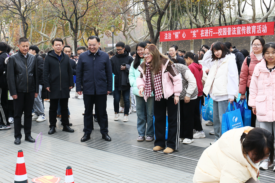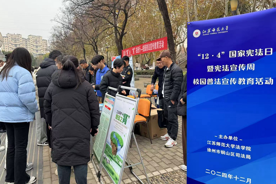 12月4日下午,我校舉辦國家憲法日暨憲法宣傳周校園普法宣傳教育活動。校黨委常委、紀(jì)委書記閭浩和徐州市司法局黨組書記、局長艾新平出席活動,銅山區(qū)委政法委、銅山區(qū)司法局、法學(xué)院負(fù)責(zé)同志、校普法志愿者大隊志愿者及師生代表參加活動。