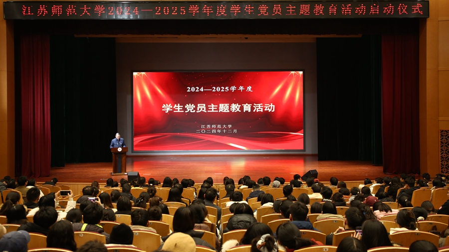 芮國強在啟動儀式上作動員講話。他指出,根據(jù)青年學生黨員群體的特點,量身打造具有江蘇師大特色的主題教育活動,不僅是廣大學生黨員認真學習貫徹習近平新時代中國特色社會主義思想,強化黨性教育、筑牢忠誠根基的重要舉措,也是踐行社會主義核心價值觀、弘揚優(yōu)秀校園文化的實際行動。芮國強希望廣大青年學生黨員堅持思想鑄魂,強化黨性修養(yǎng),持續(xù)用習近平新時代中國特色社會主義思想鑄牢信仰之基、補足精神之鈣;注重知行合一,踐行黨的宗旨,立志做有理想、敢擔當、能吃苦、肯奮斗的新時代好青年;強化紀律意識,嚴守紀律規(guī)矩,在思想上筑牢紀律防線,把遵規(guī)守紀刻印在心里。